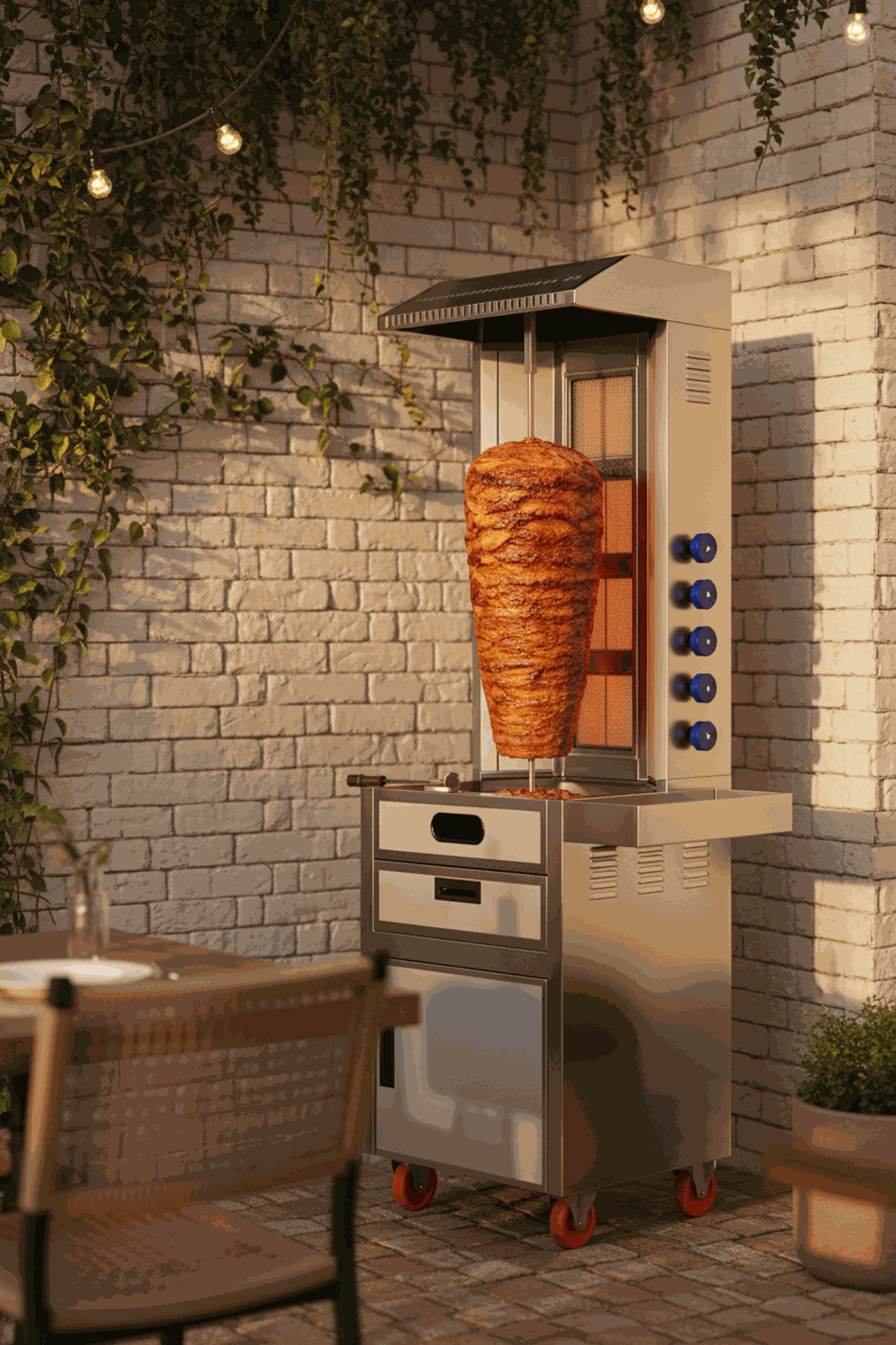 تعتبر ماكينة الشاورما ذات الخمس شعلات خيارًا رائدًا في تجهيزات المطابخ التجارية والمطاعم التي تبحث عن أداء موثوق وتحضير احترافي للشاورما. تتميز الماكينة بتصميم قوي وكفاءة تشغيلية عالية، مما يجعلها قادرة على تلبية الطلبات المكثفة مع الحفاظ على جودة تسوية متساوية للحوم.
